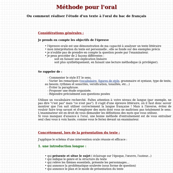 Le français demande une méthodologie à maîtriser pour bien utiliser ses 4 heures d'examen ! C'est un examen pratique où tu vas mettre tes connaissances en application dans le cadre d'un exercice (dissertation. Cours en ligne, conseils methodologiques, ressources sur les auteurs et oeuvres au programme: Le sujet est constitué d'un corpus de textes, en lien avec la thématique au programme, et se décompose en deux parties : Préparer l'écrit du bac de français :